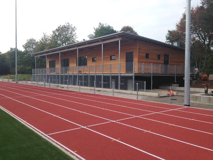 • Neubau eines Funktionsgebäudes für Schul- und Vereinssport mit Gemeinschaftsräumen und Umkleiden